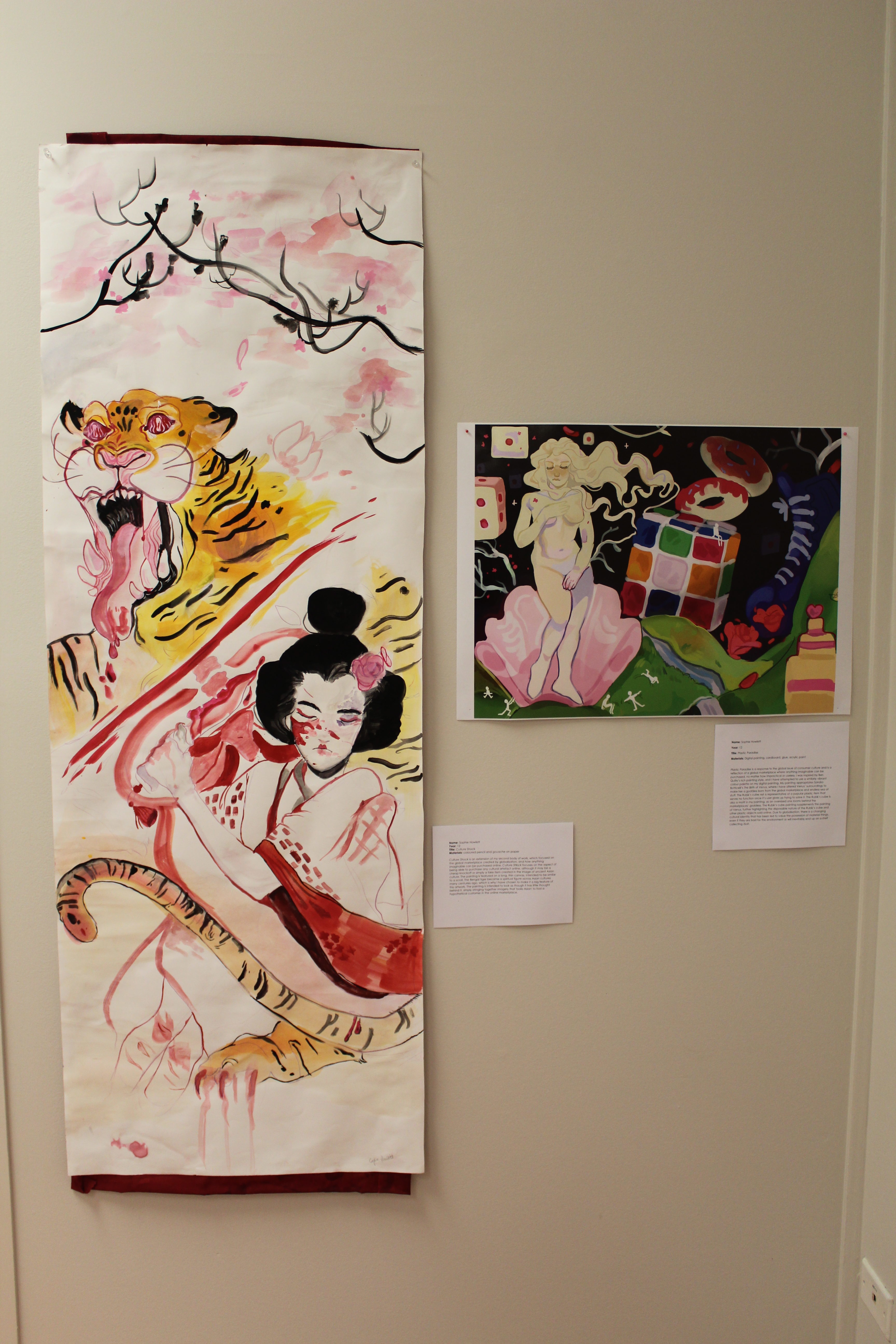 Students were asked to investigate two quite different concepts throughout the year in order to create two ‘bodies of work’. The first was to explore a student selected focus pertaining to the concept ‘The Artist’s Condition: Introspection and Identity.’ The second body of work was to explore the concept ‘Globalisation and Changing Cultural Identity.’